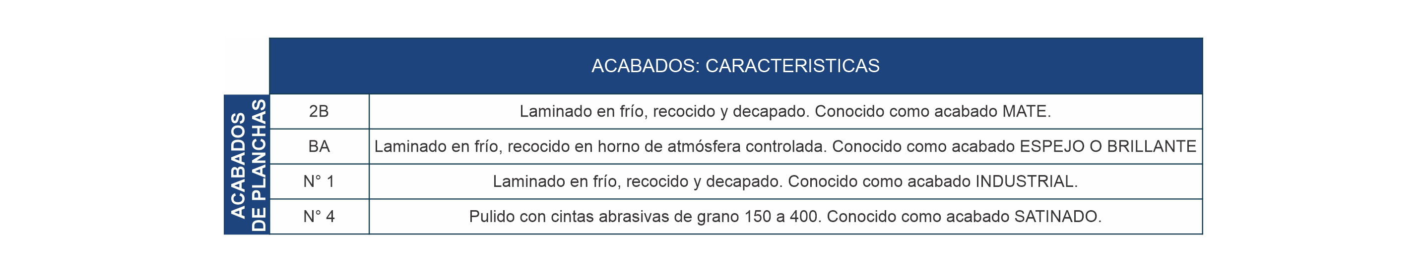 Contamos con planchas de acero inoxidable con laminado en frio, recocido y descapado.