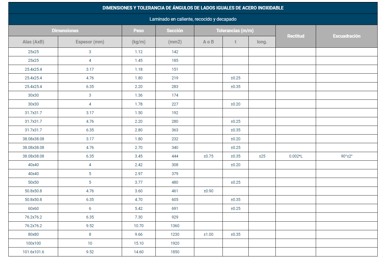 Las barras en ángulos de acero inoxidable son muy usadas en estructuras de ingeniería
